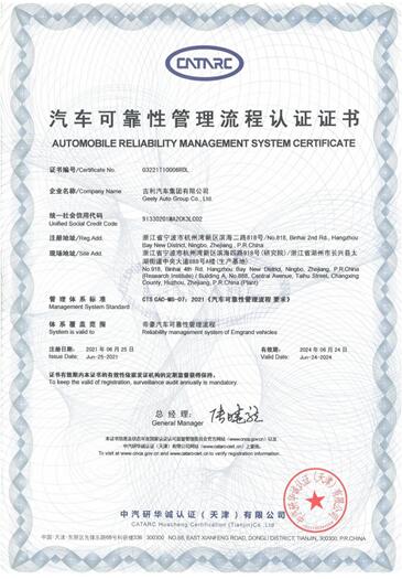 匠心铸就冠军品质 行业首获汽车可靠性管理流程认证