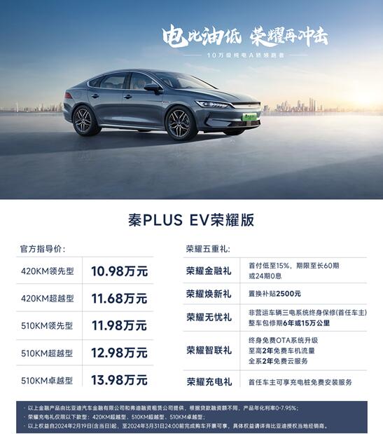三大焕新价值,五大颠覆实力,秦PLUS荣耀版刷新A轿体验新高度,以7.98万元起的定价震撼泉城。秦PLUS荣耀版的到来,不仅展示了比亚迪在新能源汽车领域的卓越成果,更宣告了“电比油低”新时代的正式开启。